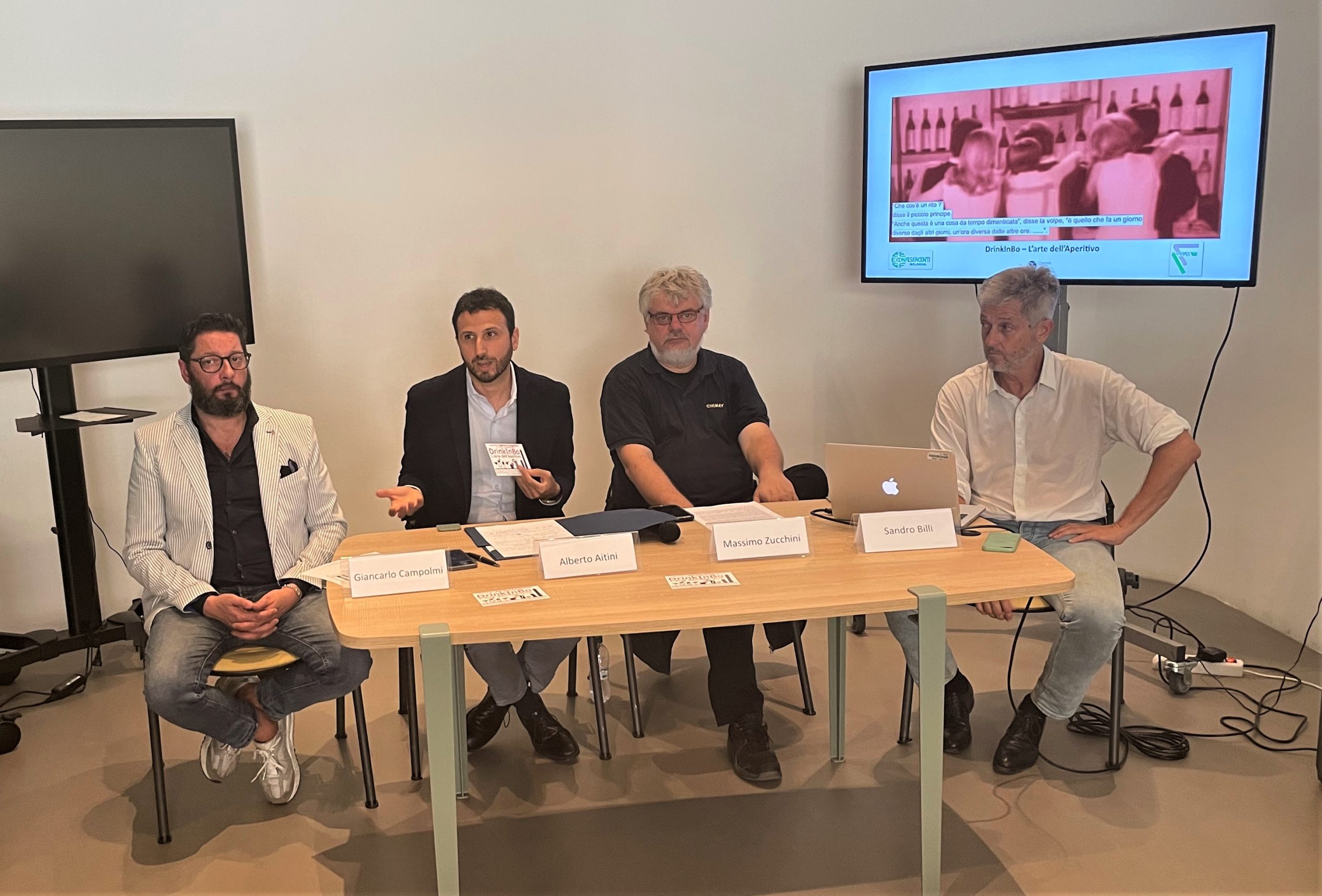 Organizzata da Confesercenti Bologna e realizzata da Ce.S.Conf. 1 Srl con il contributo della Camera di Commercio di Bologna, l’iniziativa DrinkInBo – L’arte dell’Aperitivo ha lo scopo di promuovere l’Aperitivo di Qualità. Stamattina, nello Spazio Eventi di eXtraBO (Piazza del Nettuno 1/ab, Bologna) è stata presentata da Alberto AITINI (CAT- Confesercenti Bologna), Giancarlo CAMPOLMI (Presidente Settore Bar Confesercenti Bologna) e dal professor Alessandro TORTELLI (Direttore Centro Studi Turistici) che ha esposto una ricerca sulle abitudini degli italiani e degli emiliani in fatto di apertivi al bar. L’incontro è stato presieduto da Massimo ZUCCHINI, Presidente di Confesercenti Bologna.