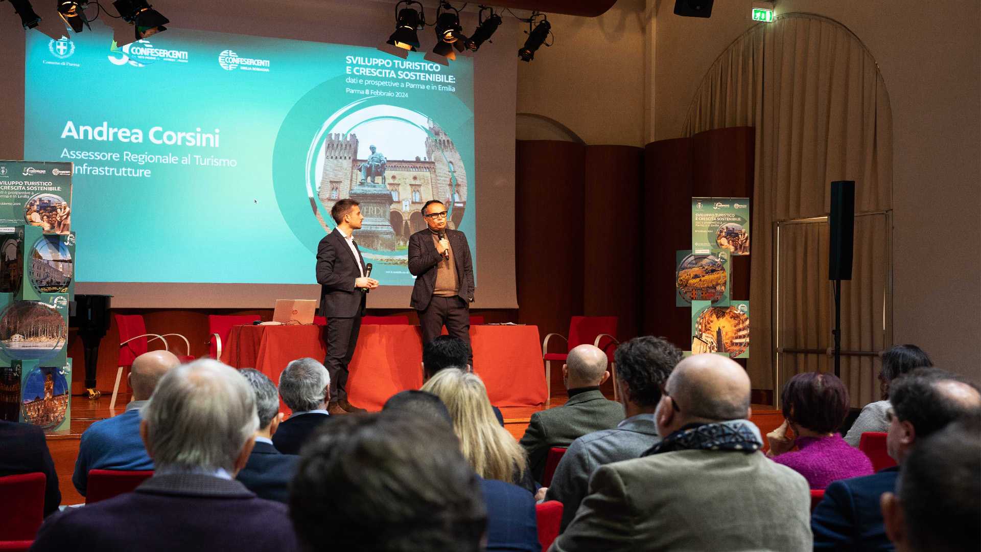 “Sviluppo Turistico e Crescita Sostenibile”, convegno organizzato da Confesercenti Parma, in collaborazione con Confesercenti Emilia Romagnail patrocinio del Comune di Parma e il sostegno di Emil Banca, e svoltosi ieri, giovedì 8 febbraio, presso la Sala Concerti della Casa della Musica, ha voluto proporre il tema della sostenibilità come concetto trasversale, non solo legato a una forte attenzione all’ambiente, ma anche di tutela patrimoniale e socioeconomica, che eviti lo snaturamento del territorio.
