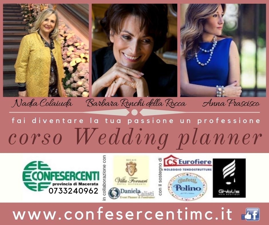 Confesercenti Macerata organizza un corso per Wedding Planner, evento con un respiro non solo regionale essendo stato arricchito di un appuntamento speciale “Aperitivo con Anna Frascisco“, un incontro aperto ai professionisti del settore che vogliono godere di un confronto diretto con una professionista con esperienze internazionali, che ha vinto edizione 2019 di Elle International come migliore Wedding Planner.