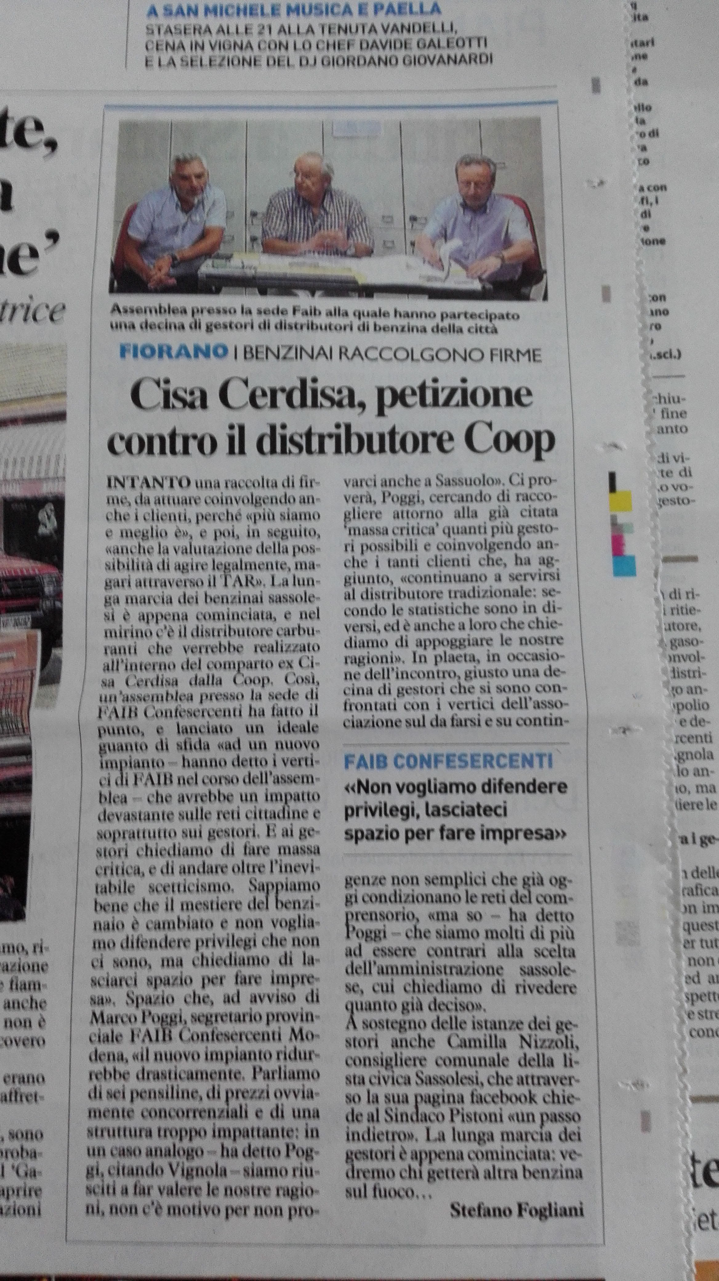 Il Direttore e il Presidente della Faib Confesercenti di Modena, Marco Poggi e Franco Gibiberti hanno invitato l’Amministrazione comunale ad un confronto per spiegare le ragioni di un settore impegnato a livello nazionale e territoriale in una difficile opera di razionalizzazione e ristrutturazione dei punti vendita. Immettere sul territorio un gigante distributivo come quello ipotizzato sarebbe come condannare alla scomparsa decine e decine  di punti vendita, con la conseguente risultante di creare nuova disoccupazione e forti disservizi agli utenti automobilistici, condannati per pochi spiccioli a fare decine di kilometri per fare rifornimento. Senza avere un servizio in più.