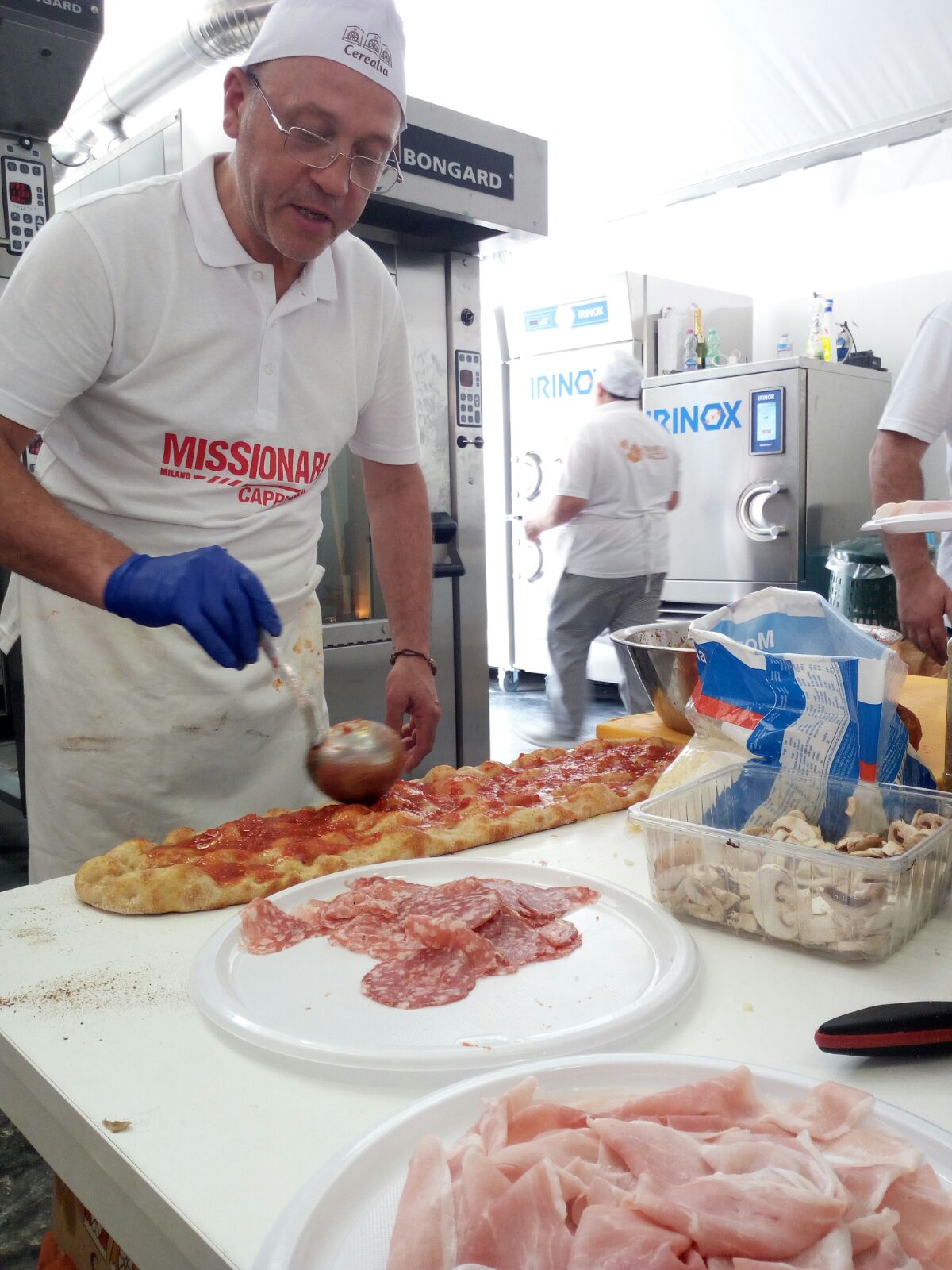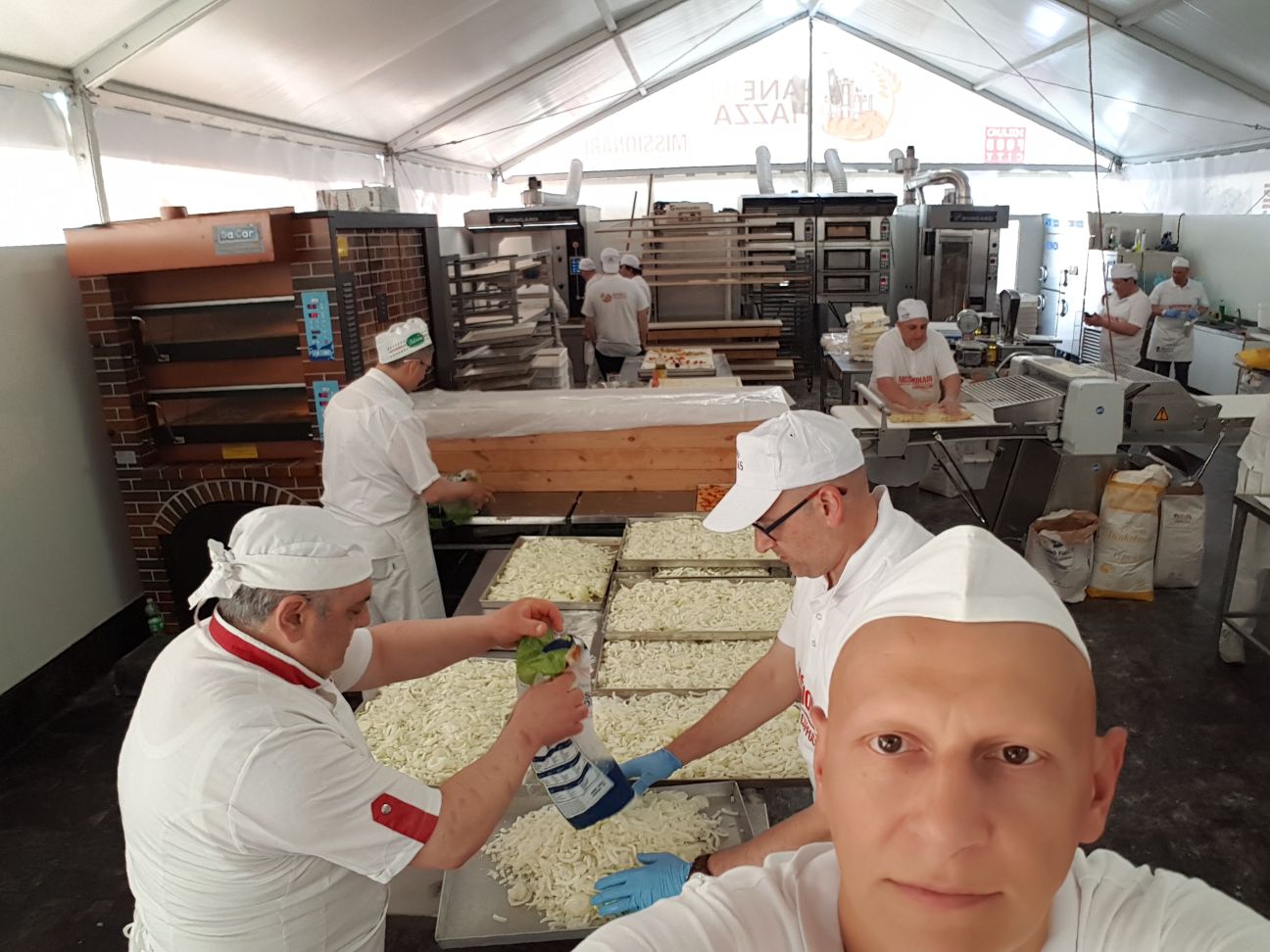 L’evento si svolge in Piazza del Duomo a Milano (lato Palazzo Carminati). La logistica è davvero eccezionale: 300 mq al coperto e 100 di dehor con mega schermo in piazza Duomo; una squadra di 80 panificatori all’opera gratuitamente 24 ore su 24; 300 chili di mozzarelle, 100 quintali di farina, 300 kg di lievito, 130 vasi di salsa al pomodoro da 5 kg cadauno e tanto altro ancora. Tutto ciò è frutto di donazioni, per almeno 50mila visitatori attesi.