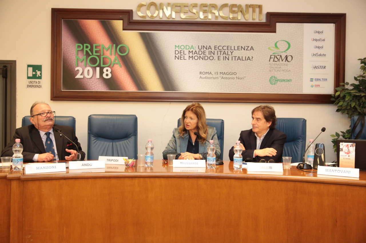 Il premio degli imprenditori italiani del commercio moda va alla Maison Trussardi. Si è tenuta questa mattina, presso l’Auditorium A. Nori in via Nazionale 60 a Roma, l’assegnazione del Premio Moda 2018 Fismo Confesercenti che ha visto la Trussardi S.p.A. aggiudicarsi il riconoscimento.
