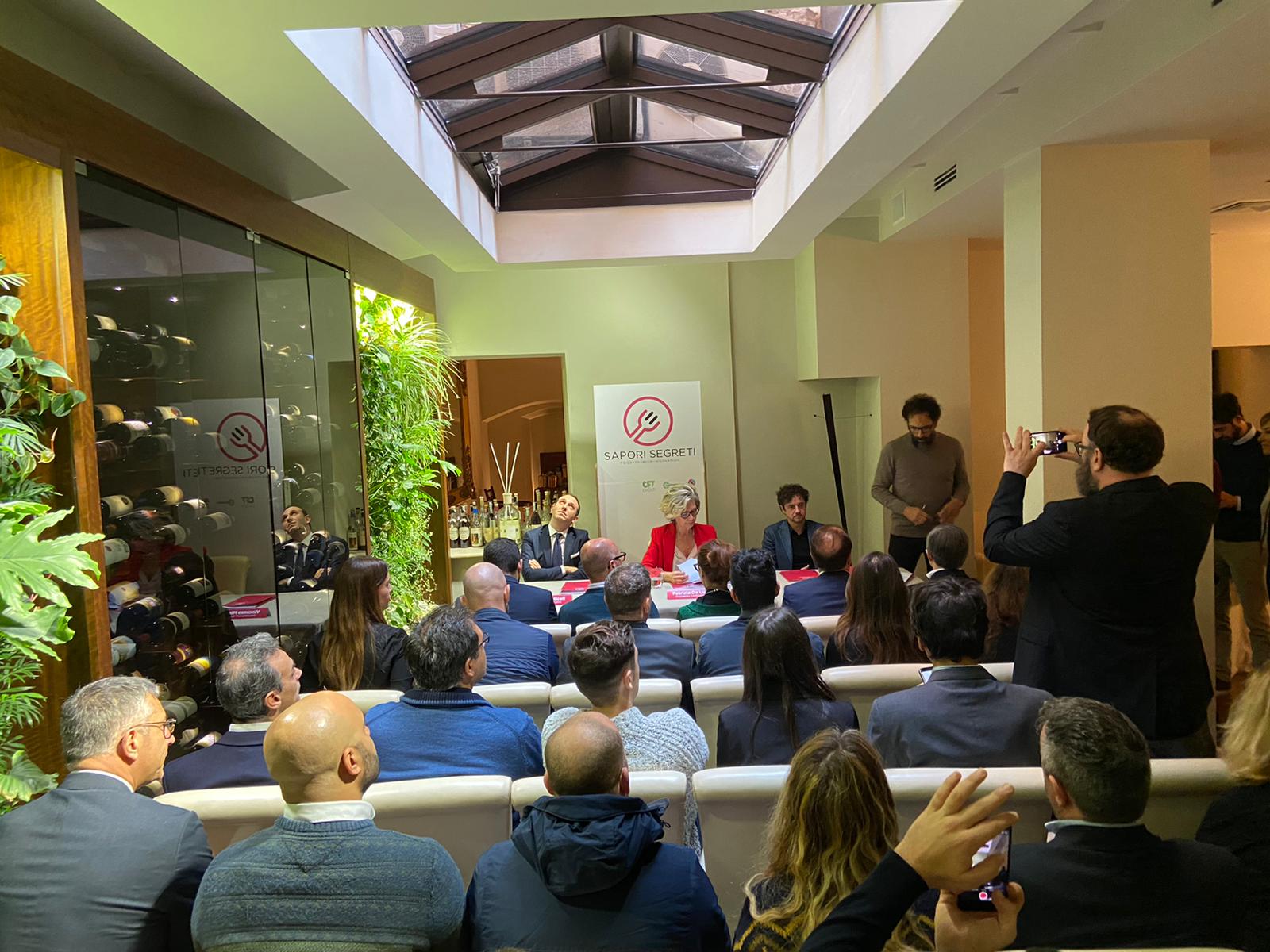 La presentazione dell’evento, unico nel suo genere, mercoledì 13 novembre presso il Ristorante “Il Convivio Troiani”, in vicolo dei Soldati 31. All’incontro, moderato dal presentatore di Rai Radio2 Federico Quaranta, intervengono Patrizia De Luise, Presidente di Confesercenti; Vincenzo Miceli, Presidente di CFT Eventi e Angelo Troiani, chef de “Il Convivio” e Direttore Artistico di Sapori Segreti.